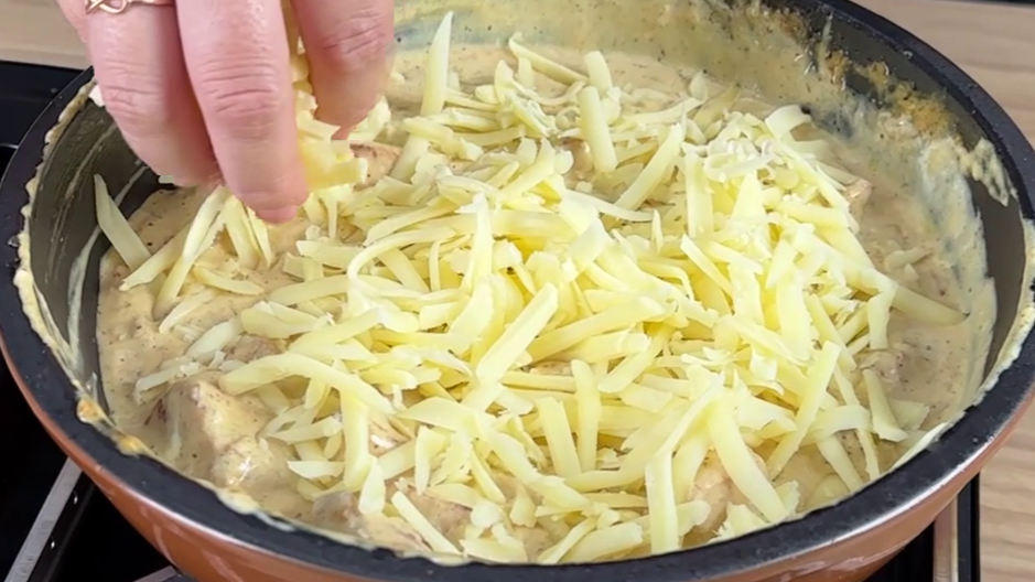 6. Cubra com queijo ralado e deixe derreter sobre o molho.