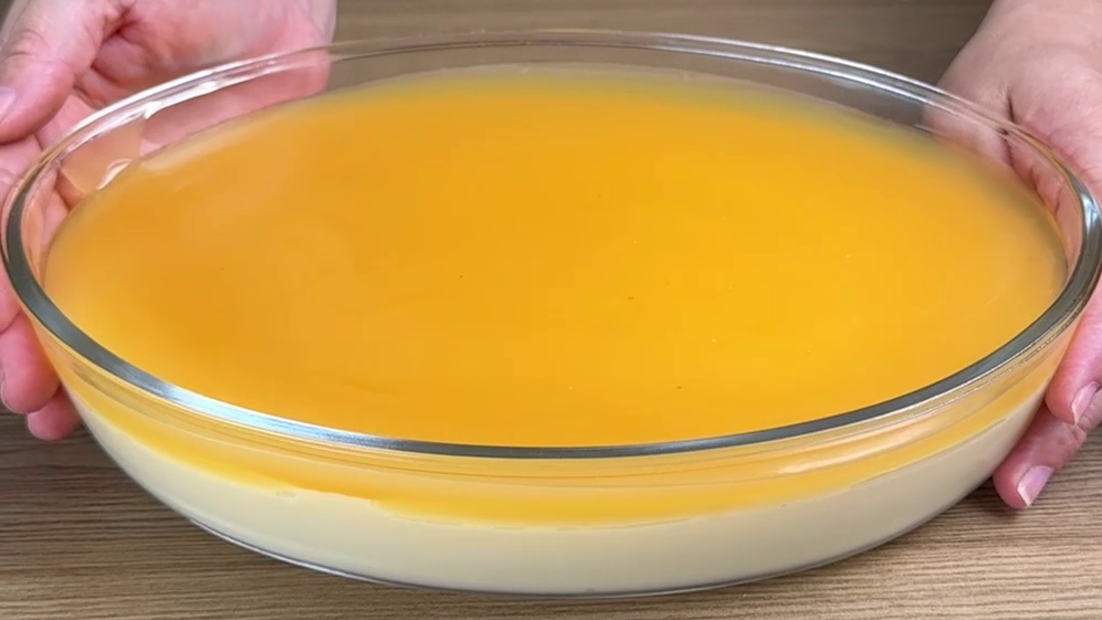 - Despeje o caramelo sobre a base de leite e leve à geladeira por mais 40 minutos.