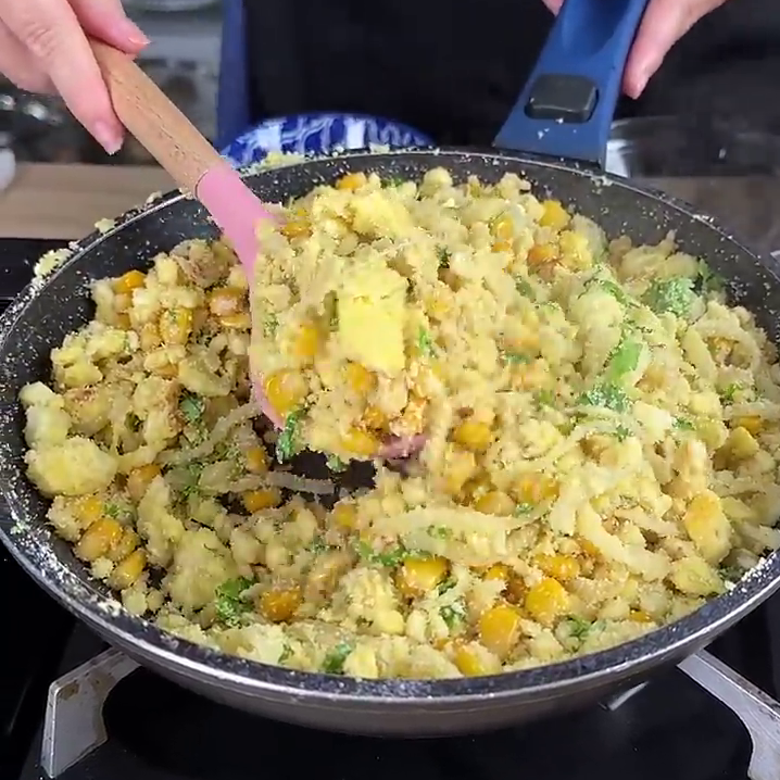 - Adiciono 1 latinha de milho verde e mexo novamente.
